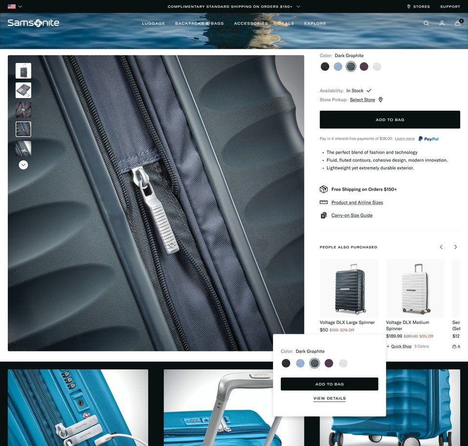 Samsonite, a globally acclaimed travel bag & luggage brand, selected Red Van Workshop's Autobahn, a dedicated SFCC accelerator, as the foundation for their new website. In this project, I collaborated intimately with Samsonite's in-house marketing team, delivering an e-commerce platform that is not only aesthetically appealing but also packed with functional features.